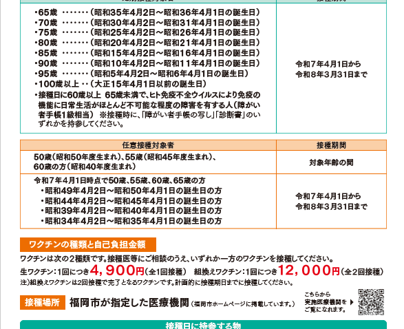 福岡市 帯状疱疹ワクチン助成のお知らせ(令和7年度)